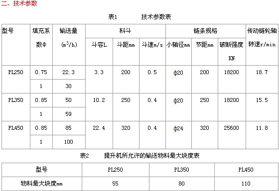 PL型斗提機(jī)為慢速重力卸料,采用板鏈作為牽引件。用來輸送比重較大的塊狀、磨琢性的物料,如塊煤、碎石、礦石、卵石等,物料溫度≤250℃。